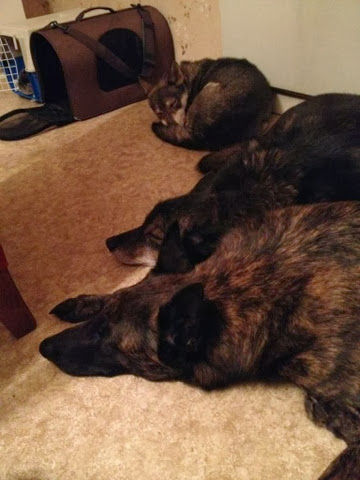 Koirat nauttivat sydämensä kyllyydestä kesän lämmöstä, ja ne ovatkin aina ulkona, kun olemme kotona. Tosin aivan liian usein käy niin, että jos olemme itse sisällä, näky keittiön ikkunasta on tämä: